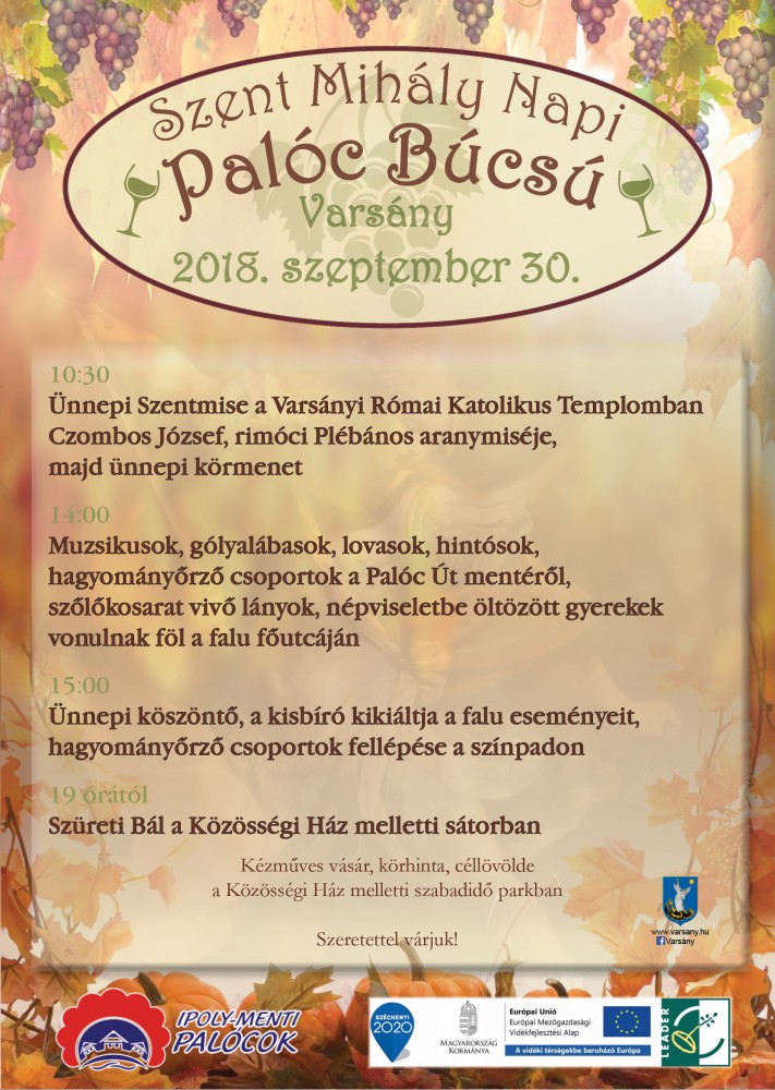 2018. szeptember 30-án Szent Mihály napi palóc búcsúra várnak mindenkit szeretettel Varsányban