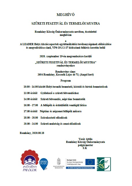 Romhány Község Önkormányzata nevében, tisztelettel