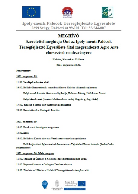 Szeretettel meghívja Önt az Ipoly-menti Palócok Térségfejlesztő Egyesülete által megrendezett Agro Arte elnevezésű rendezvényére