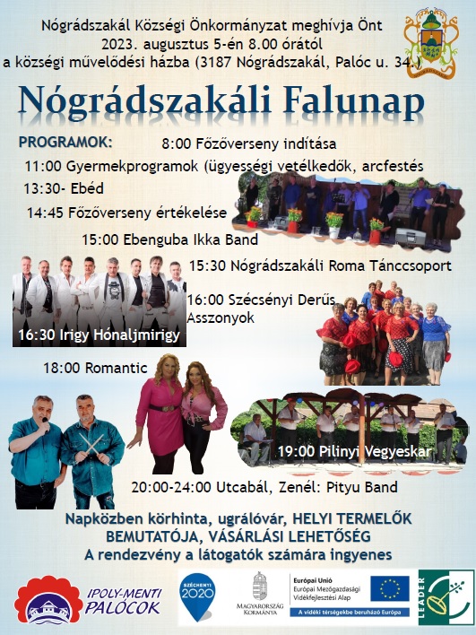 Nógrádszakál Községi Önkormányzat meghívja Önt 2023. augusztus 5-én 8.00 órától a községi művelődési házba (3187 Nógrádszakál, Palóc u. 34.)
