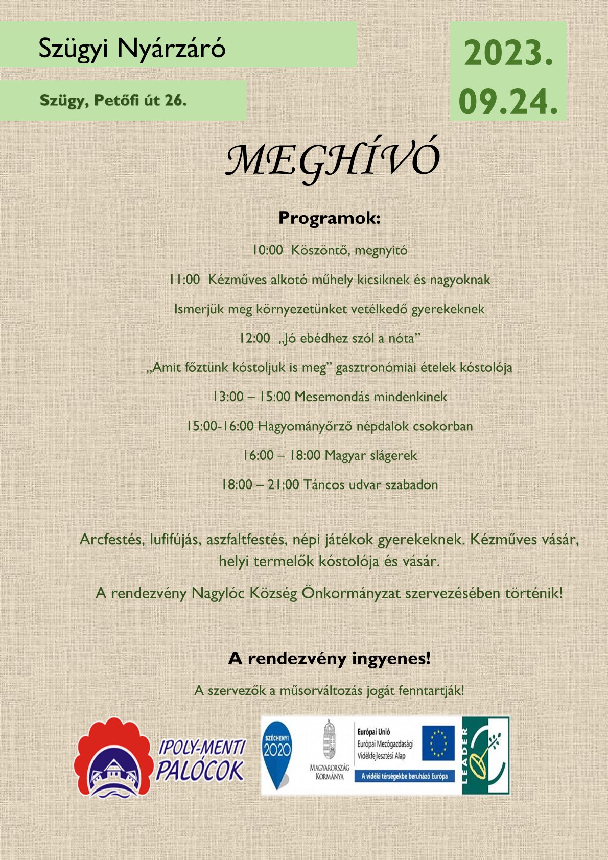 2023. szeptember 24-én várnak minden érdeklődőt a Szügyben megrendezésre kerülő Nyárzáró fesztiválra.